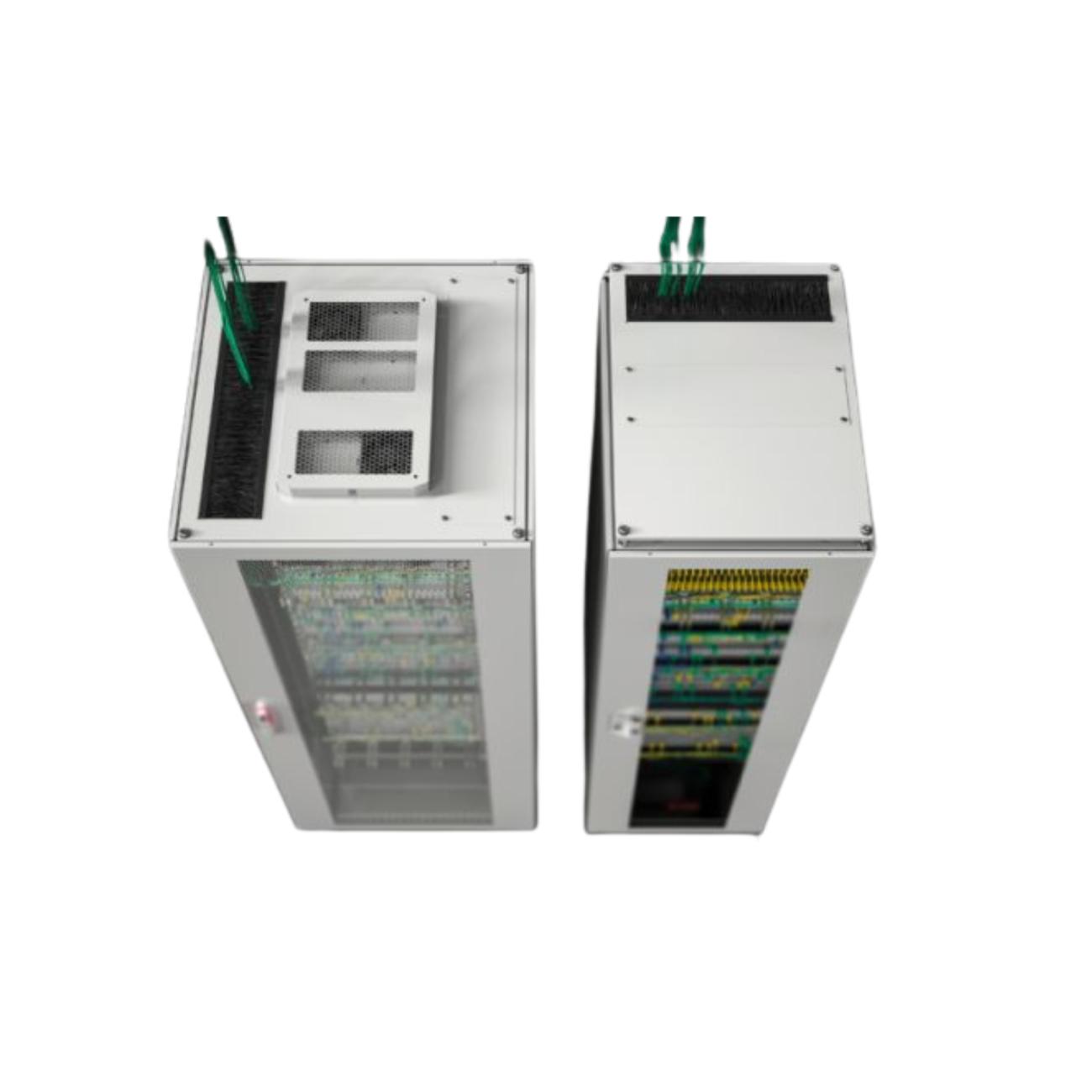 Cód. TG: BND-0241 Cód. PN: 788889846120002092200709410053020277888821El gabinete Rittal 7888898 está dimensionado específicamente para alojar servidores y sistemas de almacenamiento que requieren 1.200 mm de profundidad. Su ventaja competitiva radica en la gestión de cableado integrada en el techo, que permite canalizar grandes volúmenes de fibra y cobre de forma transversal sin obstruir el flujo de aire.