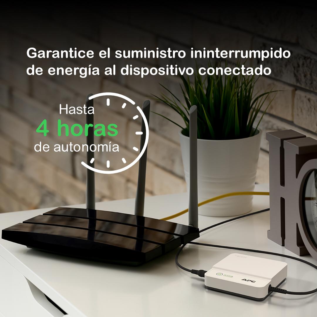 Cód. TG: AP0-0067 Cód. PN: CP12036LICon APC Back-UPS Connect, mantenga sus dispositivos de red, como routers, asistentes para su hogar inteligente, cámaras IP conectadas y en línea durante cortes de energía. Es un SAI compacto con capacidad para entrada/salida de 36 W y 12 V CC. La batería de iones de litio ofrece hasta 4 horas de tiempo de autonomía para un router medio, con el fin de garantizar una conectividad fiable. Las puntas de CC adicionales proporcionadas en la caja garantizan la máxima compatibilidad con diferentes marcas de engranajes de red con clasificación de 12 V.